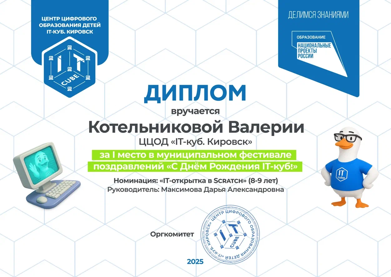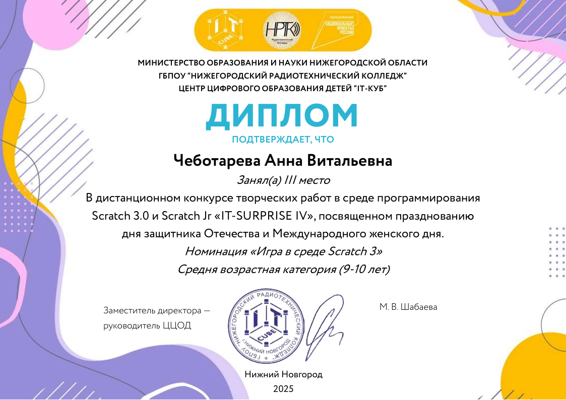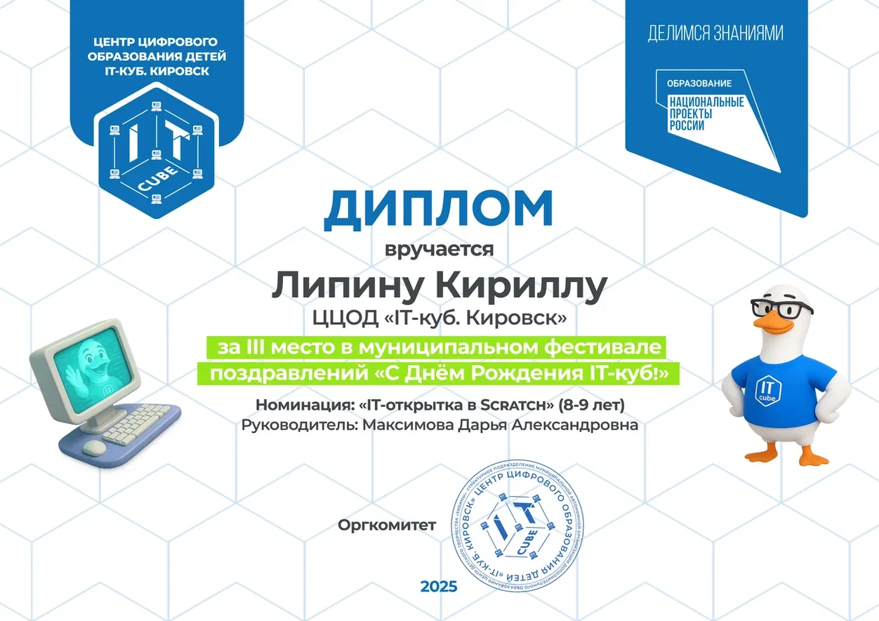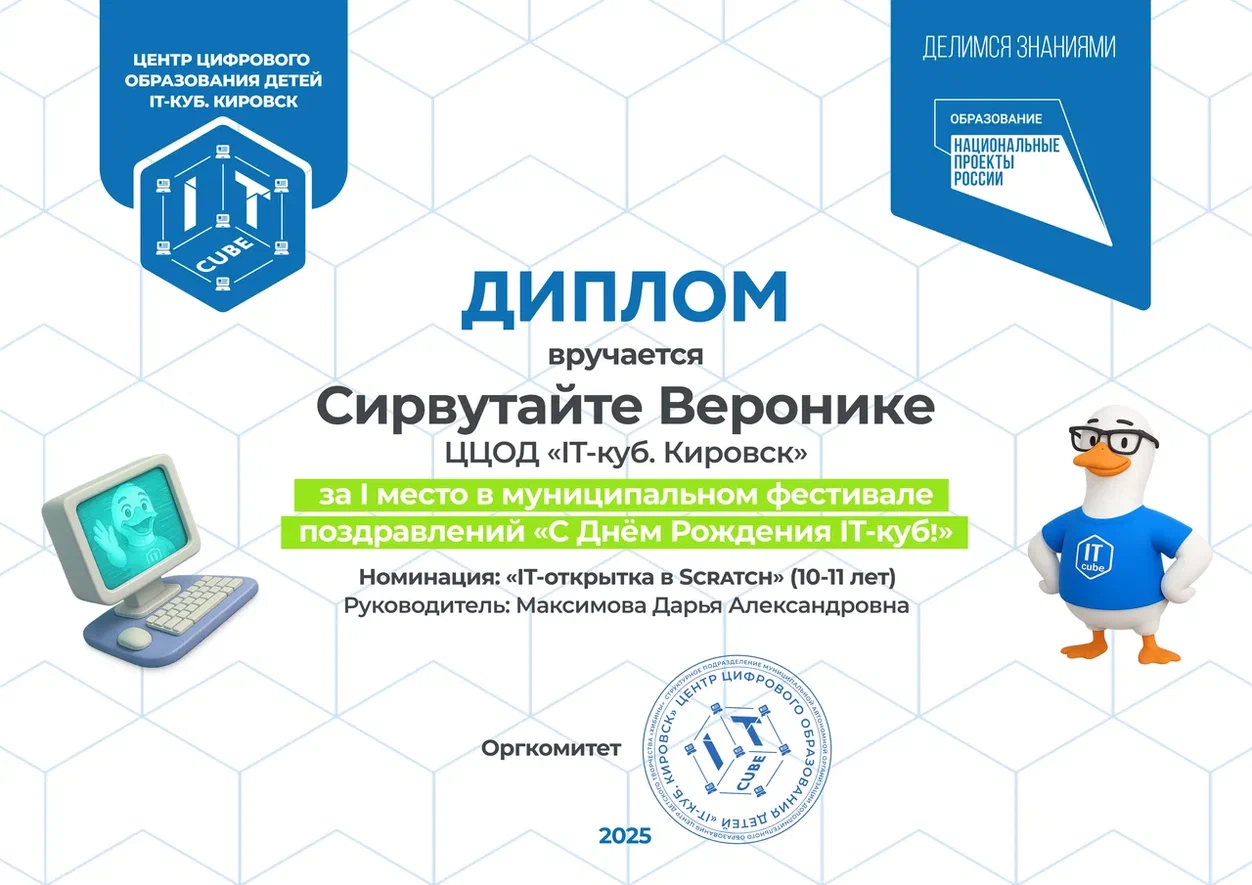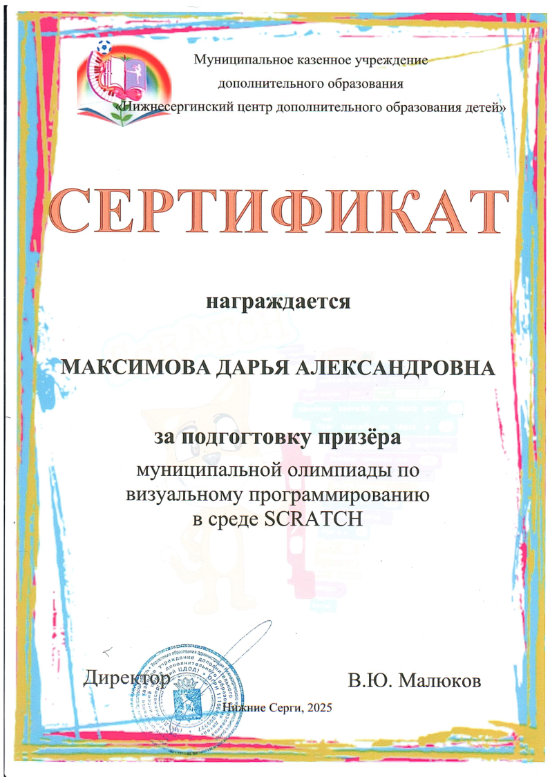 Краткое описание программы — «Основы алгоритмики и логики» направлена на формирование у учащихся алгоритмического мышления и базовых навыков программирования. В ходе обучения участники осваивают принципы построения алгоритмов (линейных, разветвляющихся и циклических), учатся формализовывать задачи и создавать проекты в среде Scratch. Программа развивает логическое и системное мышление, умение планировать деятельность и доводить решение от идеи до работающего результата, создавая основу для дальнейшего изучения языков программирования высокого уровня.