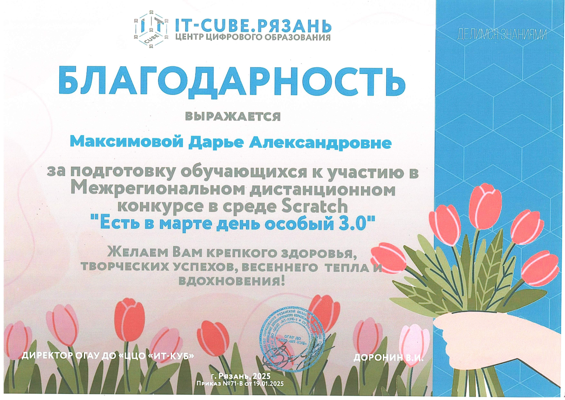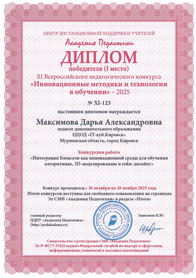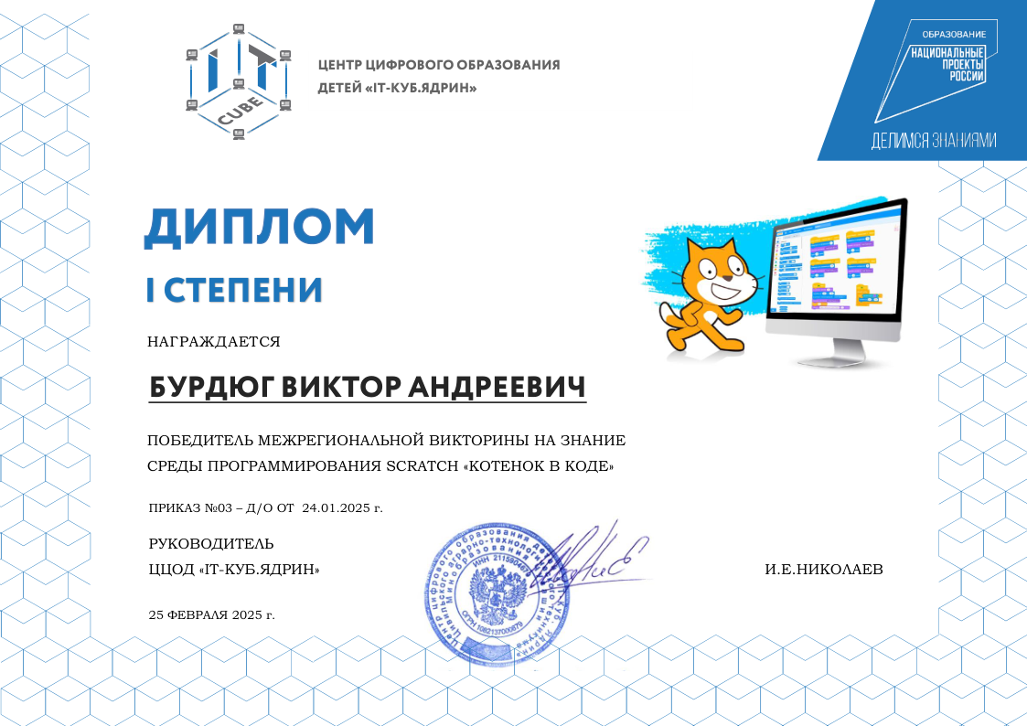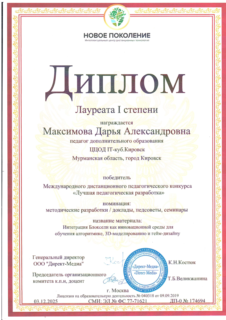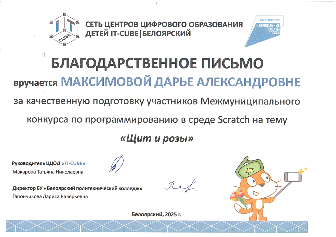 Краткое описание программы — «Основы алгоритмики и логики» направлена на формирование у учащихся алгоритмического мышления и базовых навыков программирования. В ходе обучения участники осваивают принципы построения алгоритмов (линейных, разветвляющихся и циклических), учатся формализовывать задачи и создавать проекты в среде Scratch. Программа развивает логическое и системное мышление, умение планировать деятельность и доводить решение от идеи до работающего результата, создавая основу для дальнейшего изучения языков программирования высокого уровня.