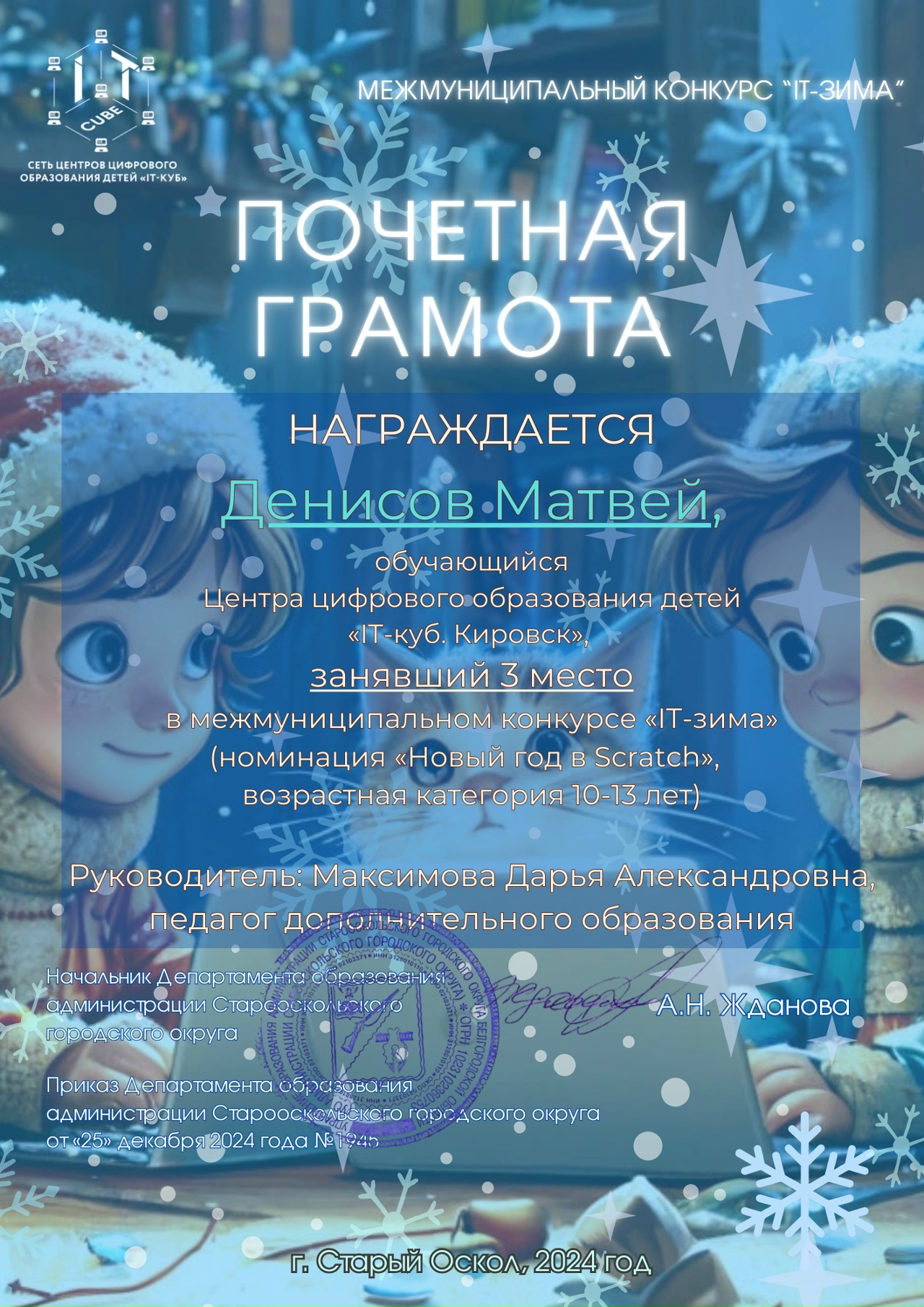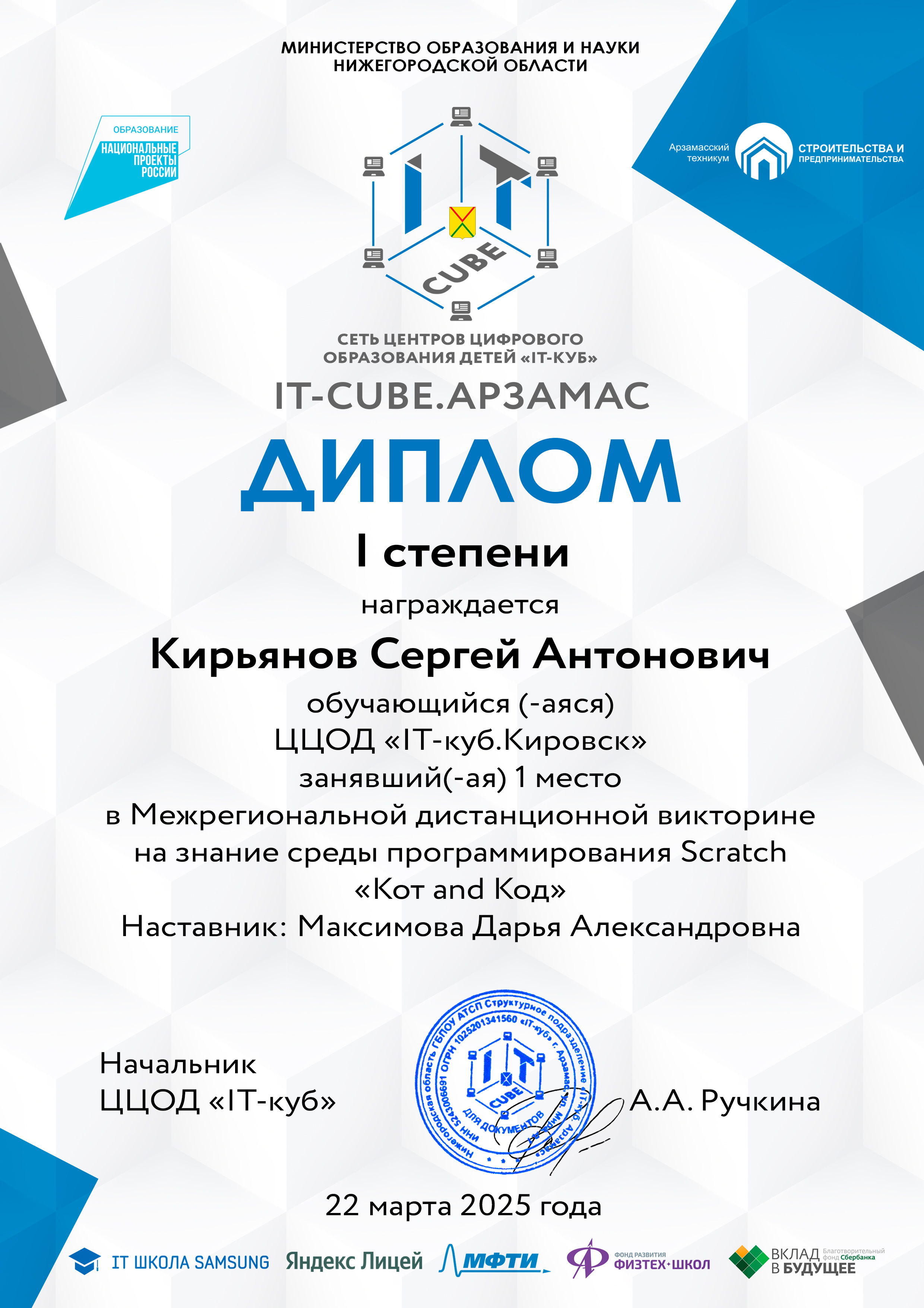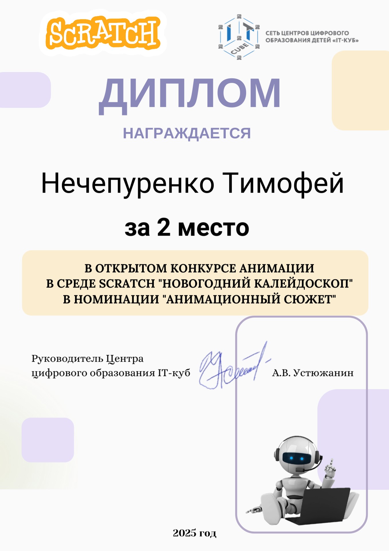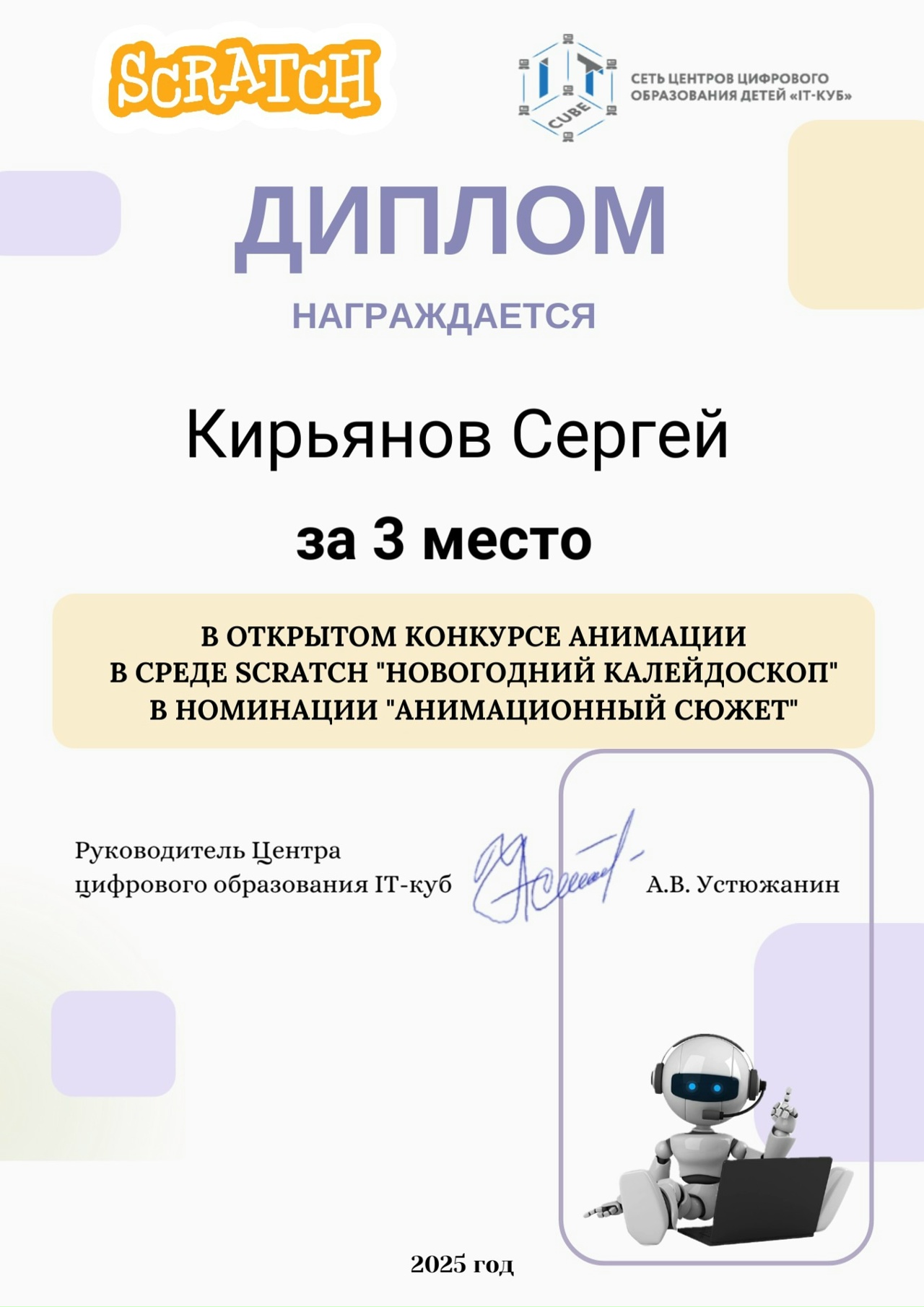 Краткое описание программы — «Основы алгоритмики и логики» направлена на формирование у учащихся алгоритмического мышления и базовых навыков программирования. В ходе обучения участники осваивают принципы построения алгоритмов (линейных, разветвляющихся и циклических), учатся формализовывать задачи и создавать проекты в среде Scratch. Программа развивает логическое и системное мышление, умение планировать деятельность и доводить решение от идеи до работающего результата, создавая основу для дальнейшего изучения языков программирования высокого уровня.